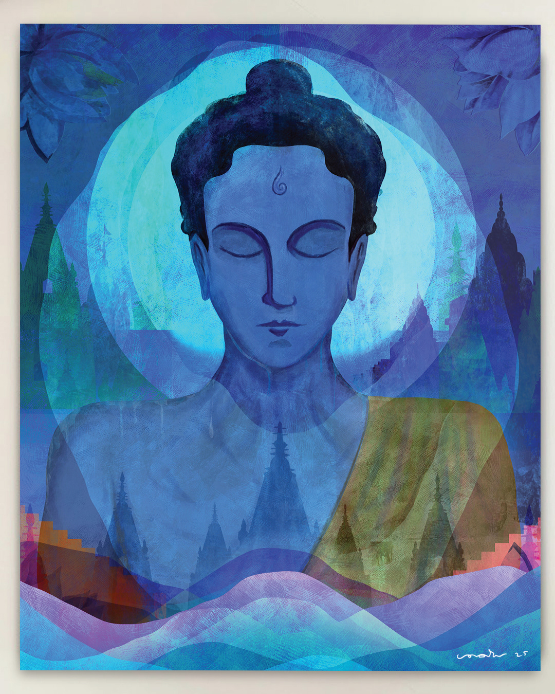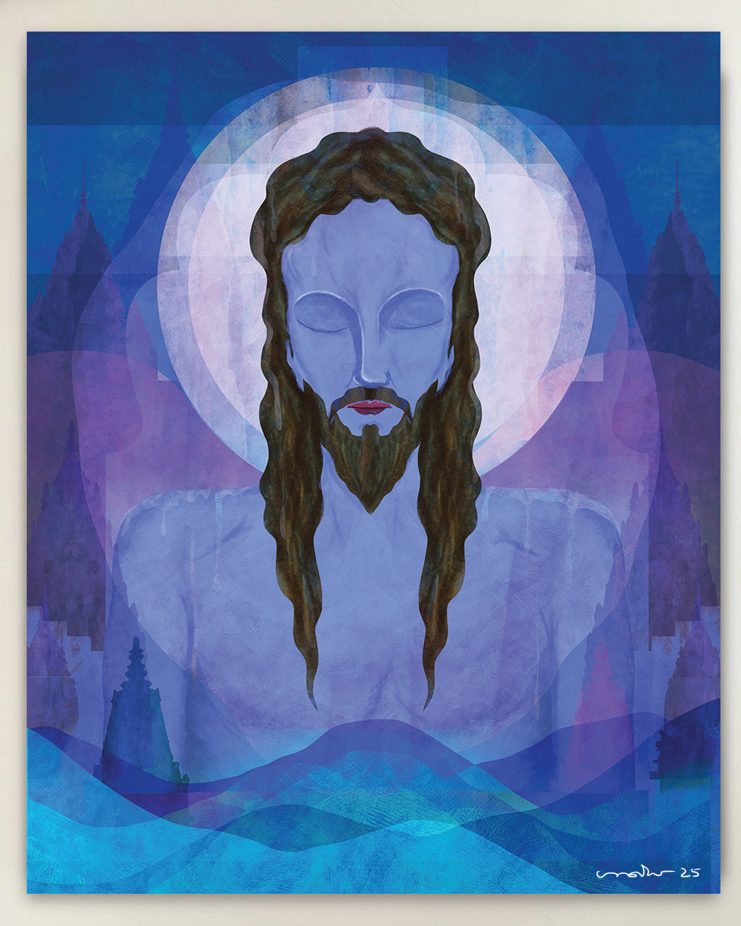 Blue Mythos is an ongoing body of work that explores belief, perception, and shared human consciousness through mythological and spiritual figures rendered in blue. The choice of blue is intentional, it is not symbolic of divinity alone, but of distance, reflection, and neutrality. Blue allows these figures to exist outside fixed religious identity and enter a more universal psychological space.